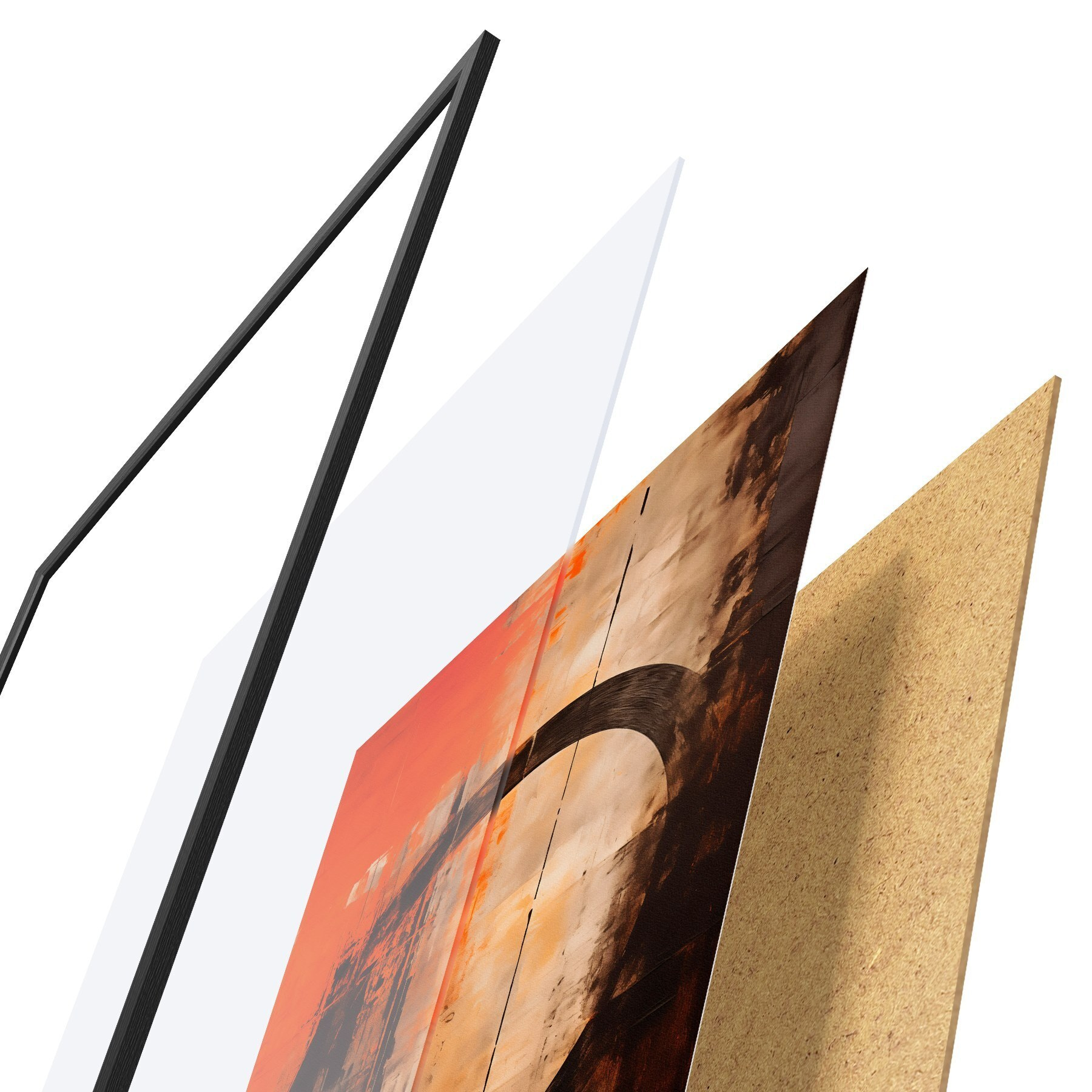 A poszter keretből, plexiből, nyomtatott képből és forgácslap hátlapból áll. A poszter a hátoldalon található rögzítőknek köszönhetően azonnal felakasztható a falra.