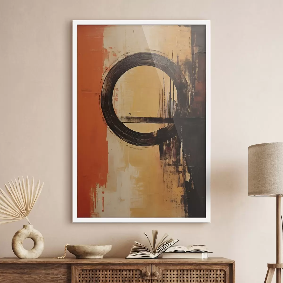 Poster Absztrakt, fekete gyűrűvel terrakotta-homok háttérrel Nr f46529