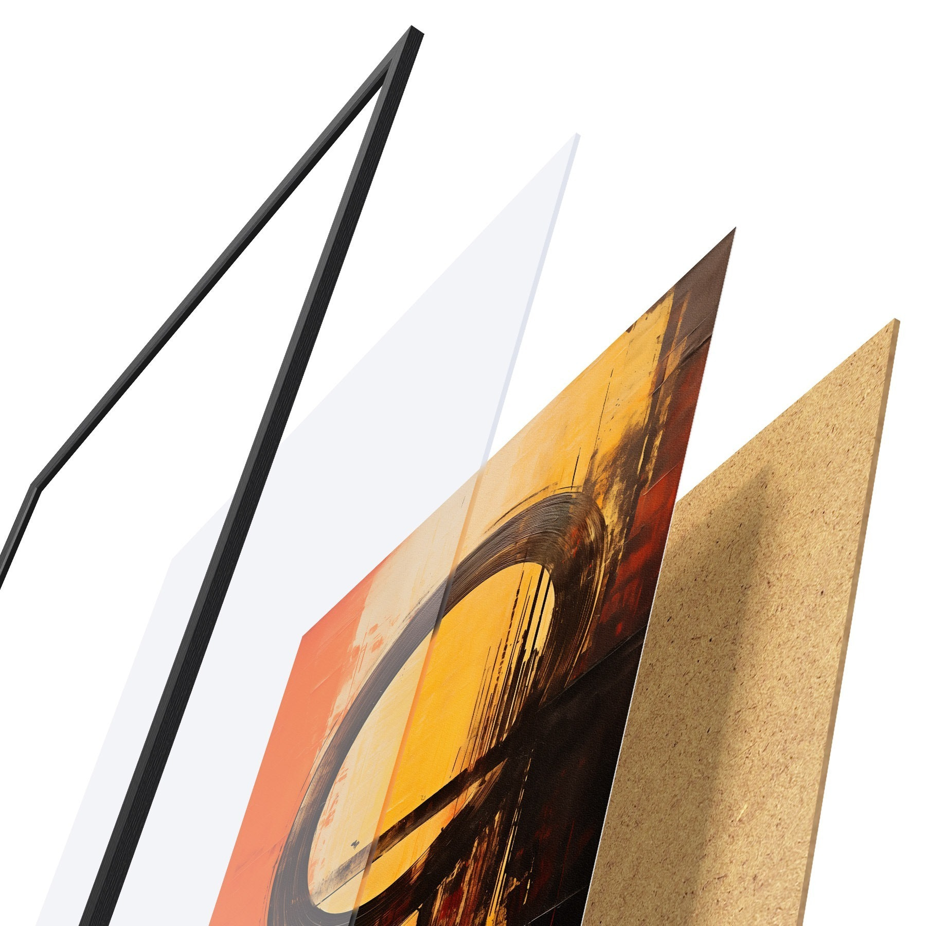 A poszter keretből, plexiből, nyomtatott képből és forgácslap hátlapból áll. A poszter a hátoldalon található rögzítőknek köszönhetően azonnal felakasztható a falra.