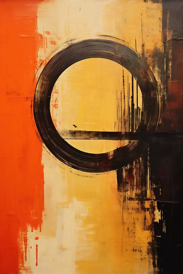 Plakát a sziklán Absztrakt, fekete gyűrűvel terrakotta-homok háttérrel f46529