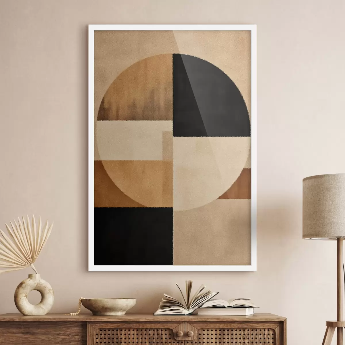 Plakát a sziklán Félkörök és négyzetek meleg tónusokban, puha textúrával f46531