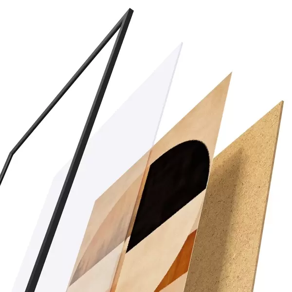 A poszter keretből, plexiből, nyomtatott képből és forgácslap hátlapból áll. A poszter a hátoldalon található rögzítőknek köszönhetően azonnal felakasztható a falra.
