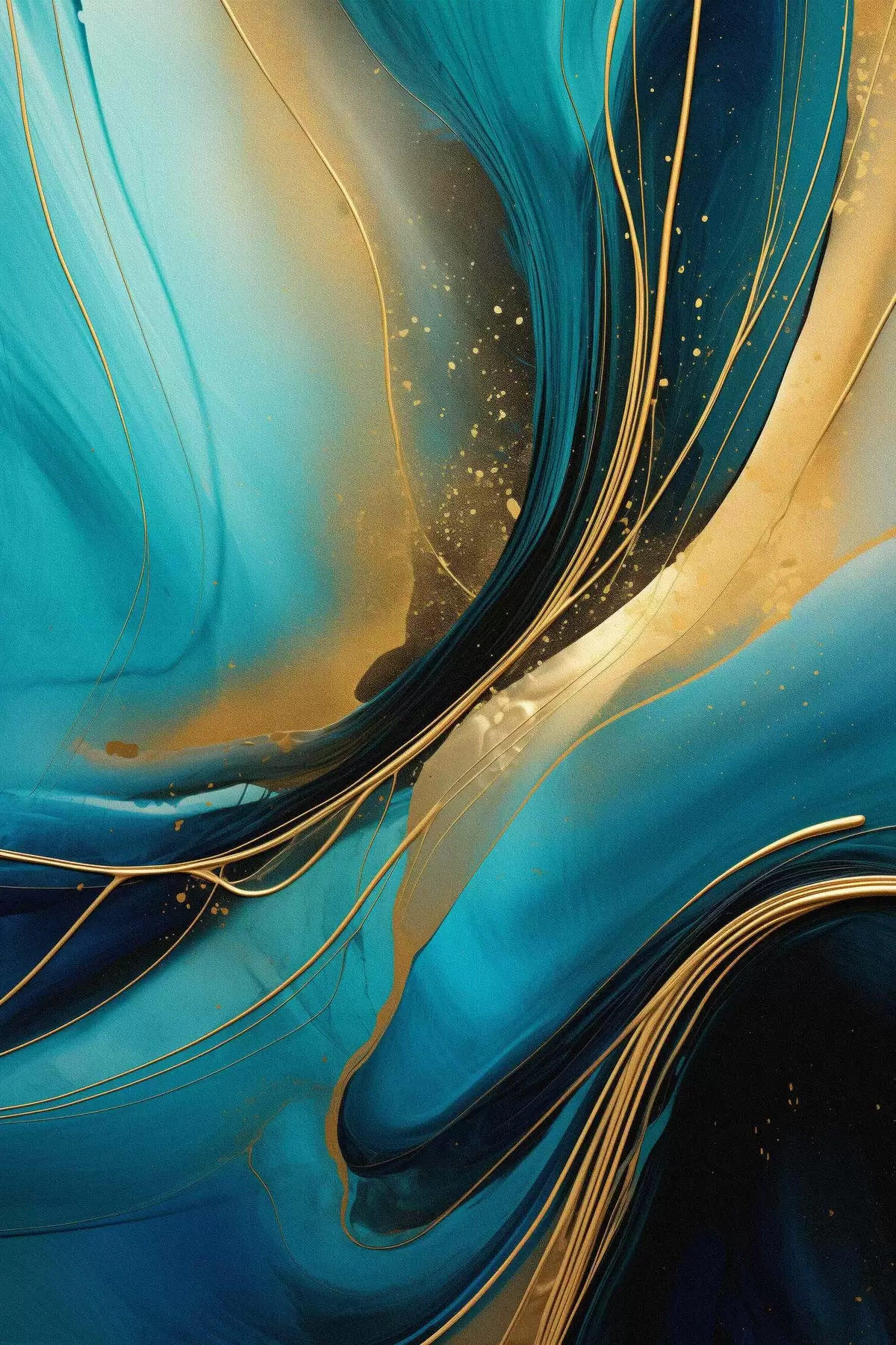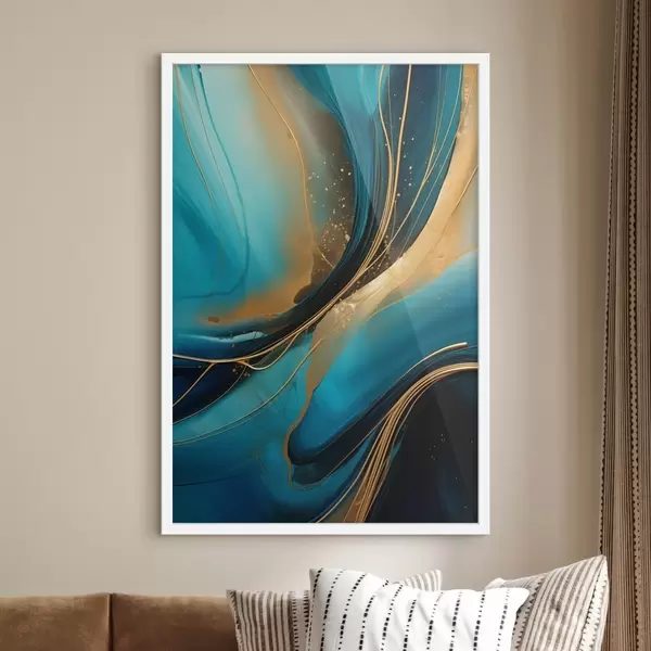 Poster Türkizkék áramlás vékony okker szálakkal Nr f46543