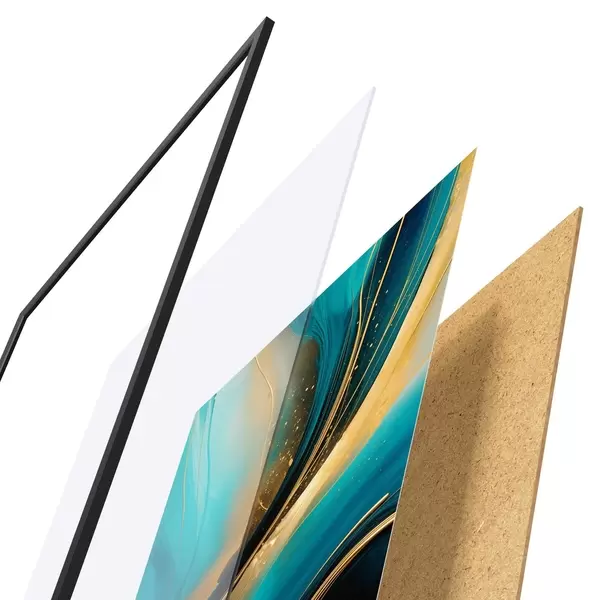 A poszter keretből, plexiből, nyomtatott képből és forgácslap hátlapból áll. A poszter a hátoldalon található rögzítőknek köszönhetően azonnal felakasztható a falra.