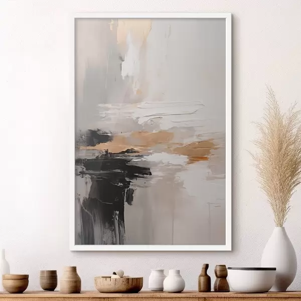 Poster Nude tónusú ecsetvonások kontrasztos fekete és okker réteggel Nr f46544