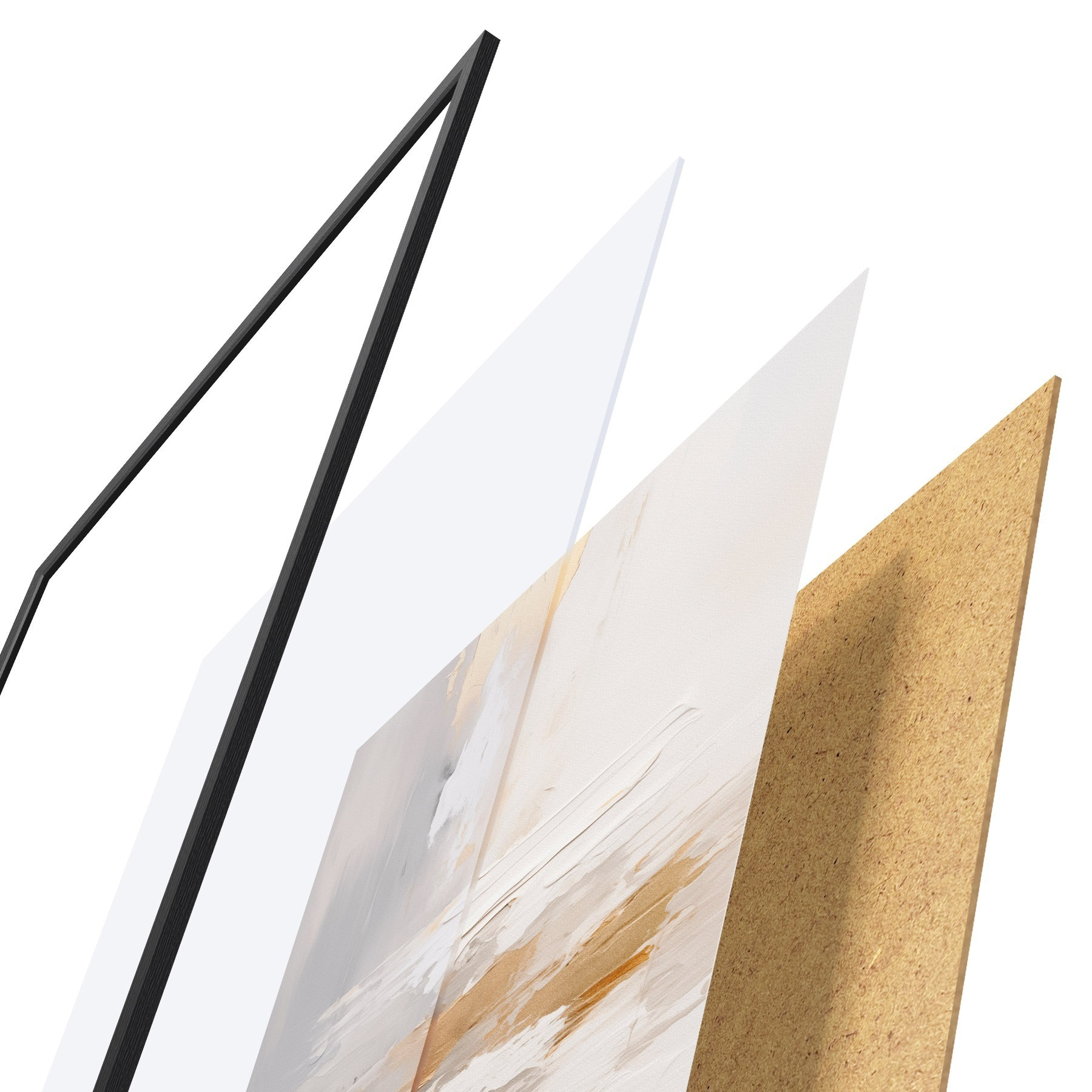 A poszter keretből, plexiből, nyomtatott képből és forgácslap hátlapból áll. A poszter a hátoldalon található rögzítőknek köszönhetően azonnal felakasztható a falra.
