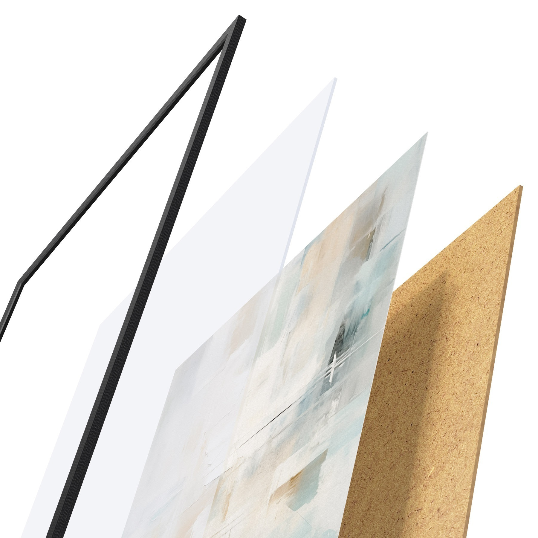 A poszter keretből, plexiből, nyomtatott képből és forgácslap hátlapból áll. A poszter a hátoldalon található rögzítőknek köszönhetően azonnal felakasztható a falra.