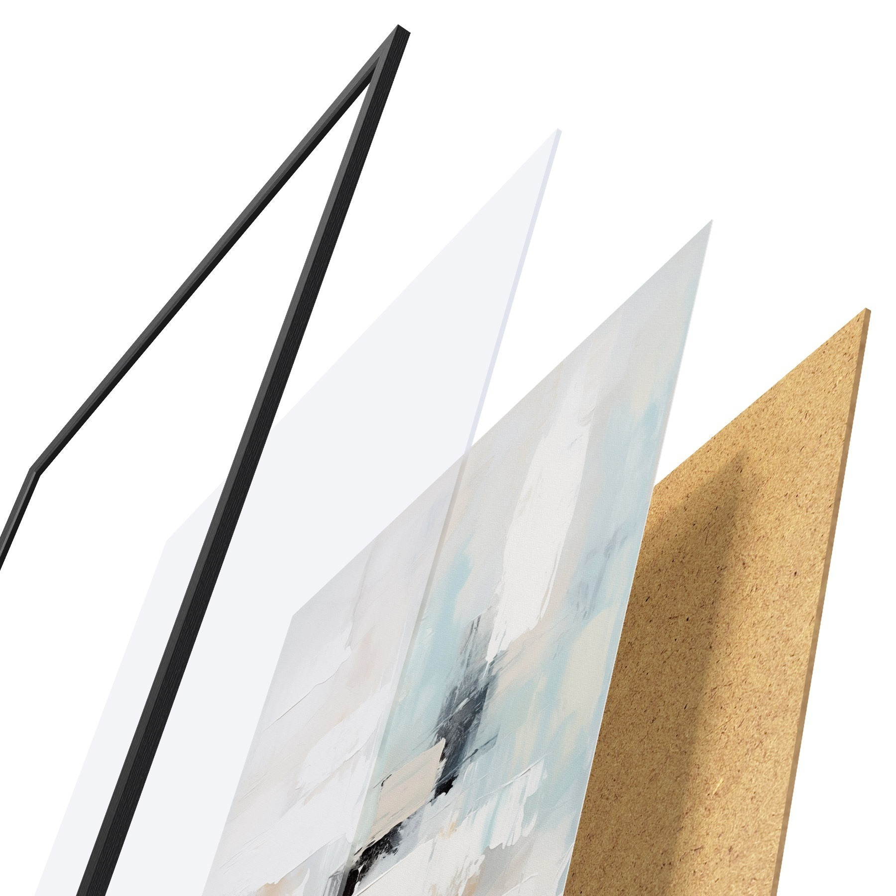 A poszter keretből, plexiből, nyomtatott képből és forgácslap hátlapból áll. A poszter a hátoldalon található rögzítőknek köszönhetően azonnal felakasztható a falra.