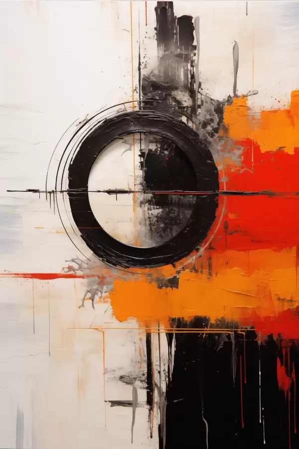 Poster Fekete kör fehér alapon, narancssárga vonások és fröccsenések Nr f46549