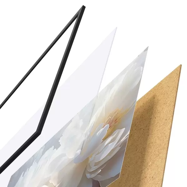 A poszter keretből, plexiből, nyomtatott képből és forgácslap hátlapból áll. A poszter a hátoldalon található rögzítőknek köszönhetően azonnal felakasztható a falra.