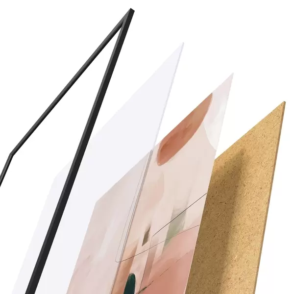 A poszter keretből, plexiből, nyomtatott képből és forgácslap hátlapból áll. A poszter a hátoldalon található rögzítőknek köszönhetően azonnal felakasztható a falra.