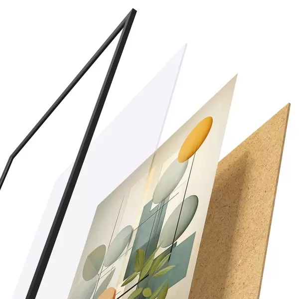 A poszter keretből, plexiből, nyomtatott képből és forgácslap hátlapból áll. A poszter a hátoldalon található rögzítőknek köszönhetően azonnal felakasztható a falra.
