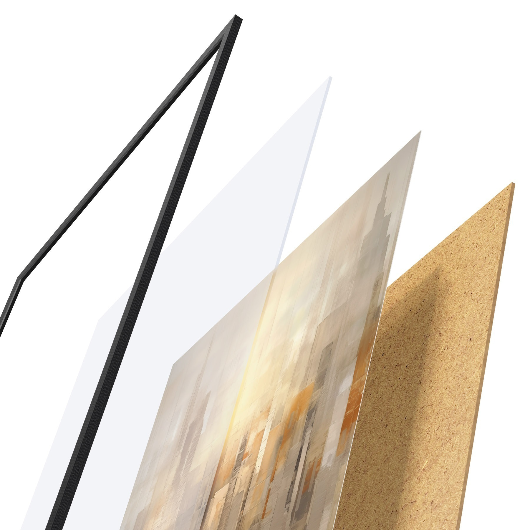 A poszter keretből, plexiből, nyomtatott képből és forgácslap hátlapból áll. A poszter a hátoldalon található rögzítőknek köszönhetően azonnal felakasztható a falra.