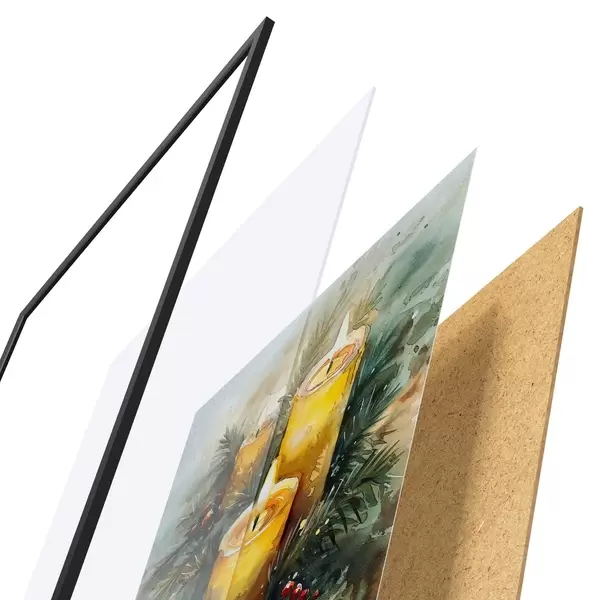 A poszter keretből, plexiből, nyomtatott képből és forgácslap hátlapból áll. A poszter a hátoldalon található rögzítőknek köszönhetően azonnal felakasztható a falra.