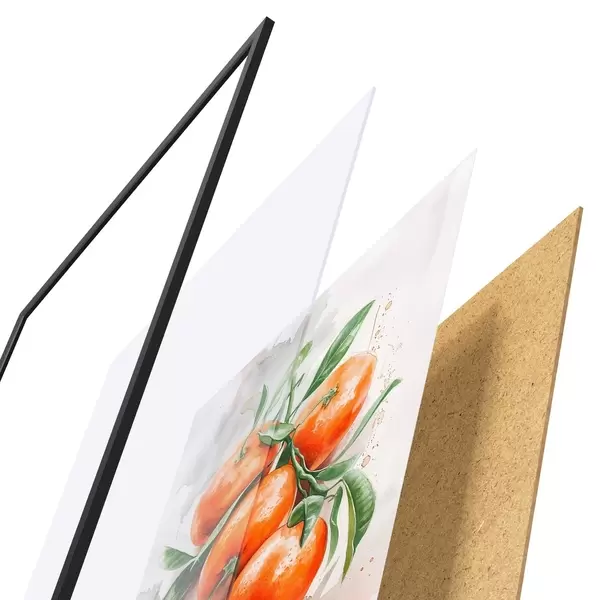 A poszter keretből, plexiből, nyomtatott képből és forgácslap hátlapból áll. A poszter a hátoldalon található rögzítőknek köszönhetően azonnal felakasztható a falra.