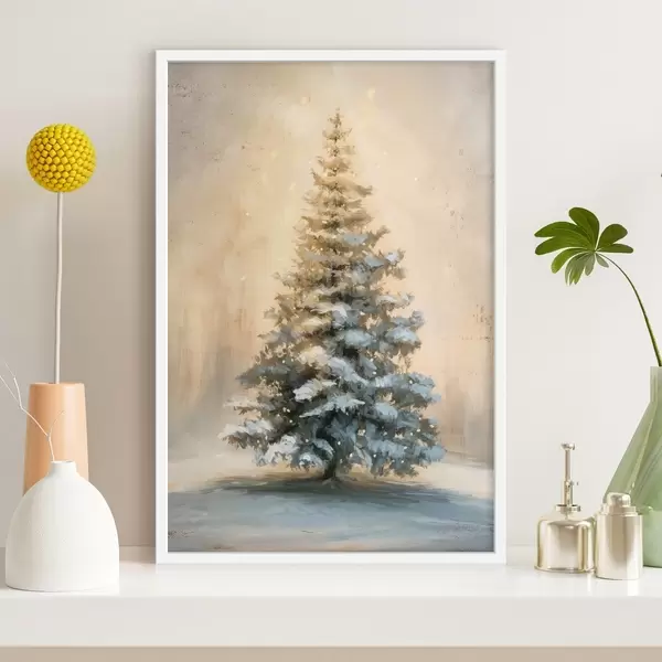 Plakát a sziklán Karácsonyfa a hóban f46589