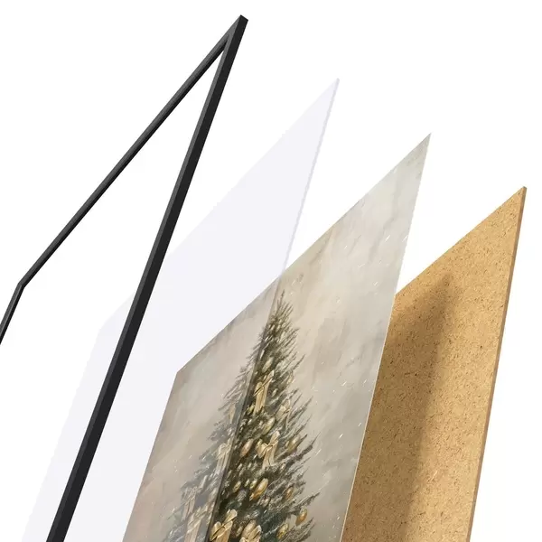 A poszter keretből, plexiből, nyomtatott képből és forgácslap hátlapból áll. A poszter a hátoldalon található rögzítőknek köszönhetően azonnal felakasztható a falra.