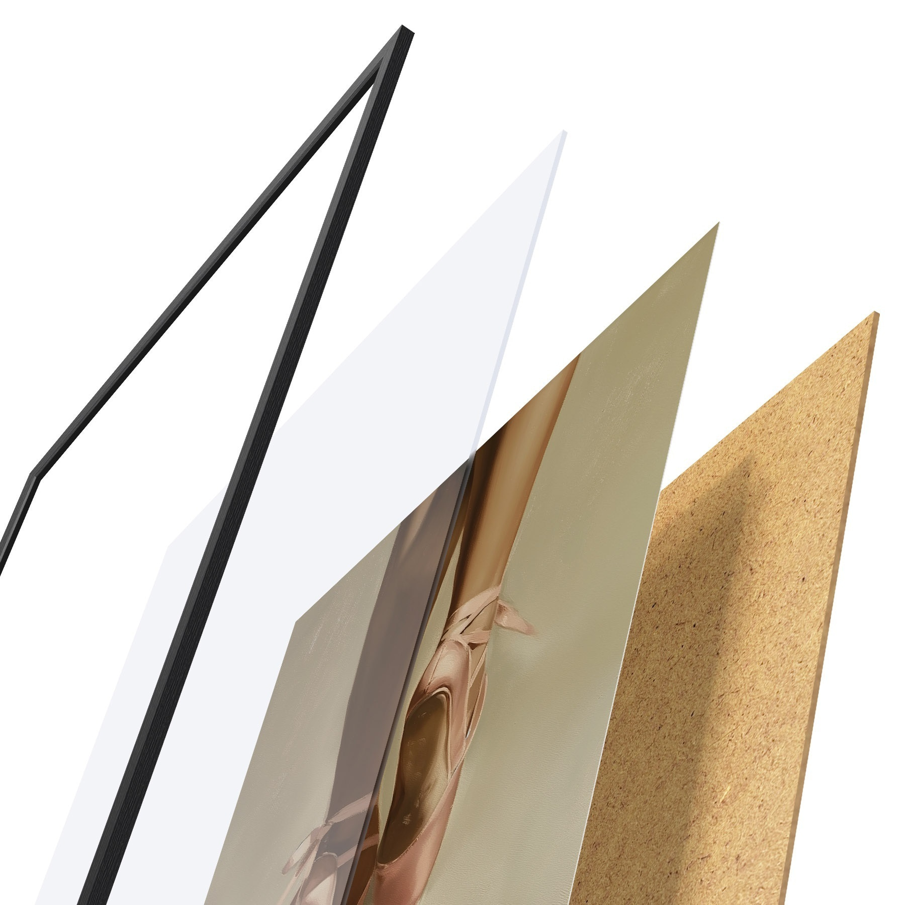 A poszter keretből, plexiből, nyomtatott képből és forgácslap hátlapból áll. A poszter a hátoldalon található rögzítőknek köszönhetően azonnal felakasztható a falra.