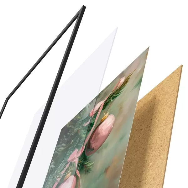 A poszter keretből, plexiből, nyomtatott képből és forgácslap hátlapból áll. A poszter a hátoldalon található rögzítőknek köszönhetően azonnal felakasztható a falra.