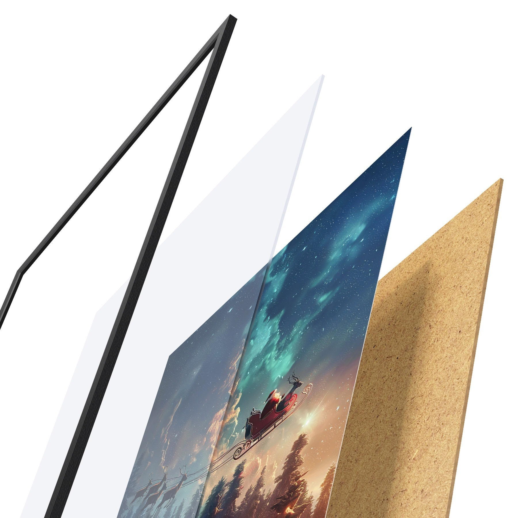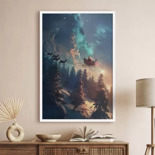 Plakát a sziklán Mikulás rénszarvasokon f46602
