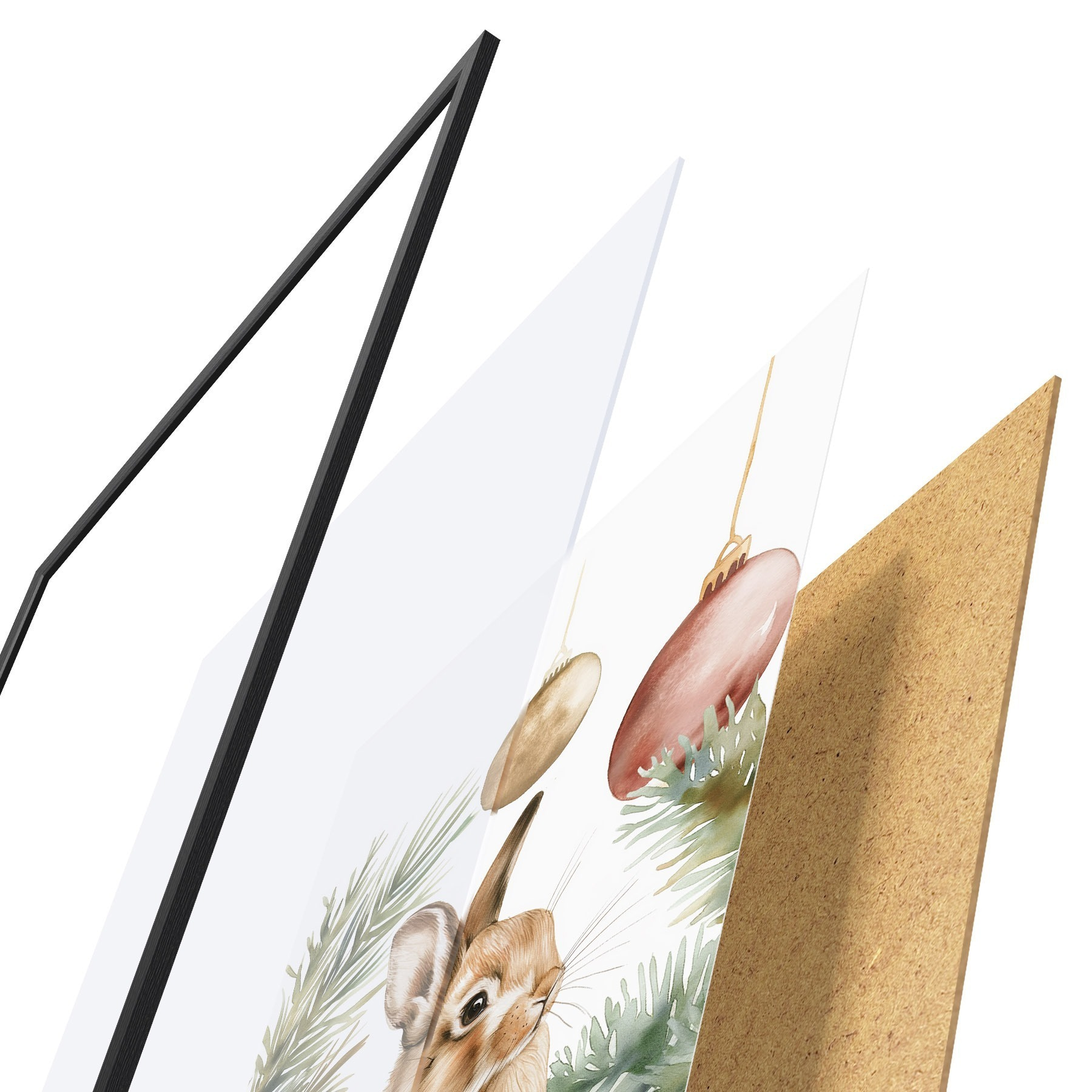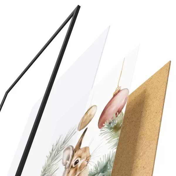 A poszter keretből, plexiből, nyomtatott képből és forgácslap hátlapból áll. A poszter a hátoldalon található rögzítőknek köszönhetően azonnal felakasztható a falra.