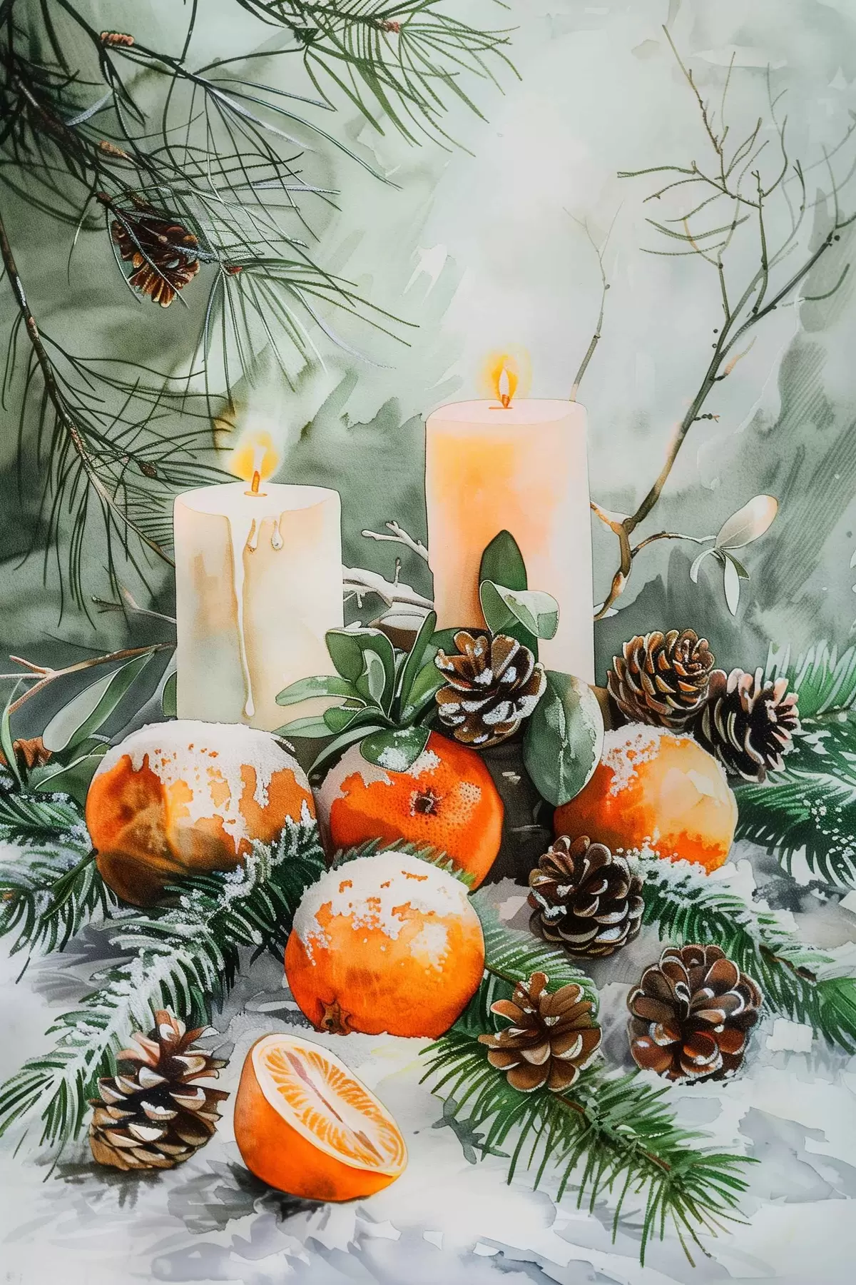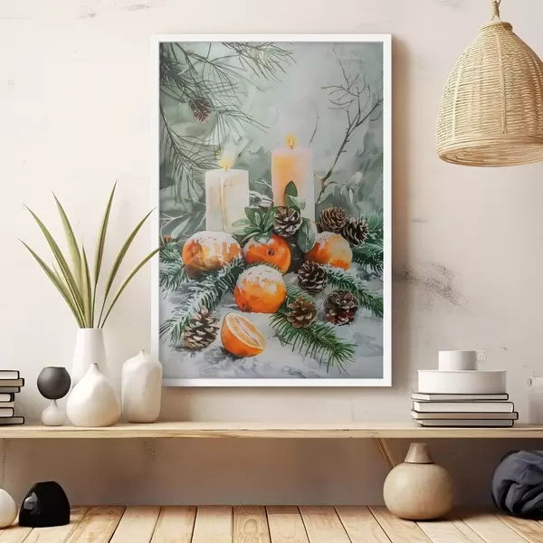 Poster Gyertyák, mandarinok és fenyőtobozok Nr f46614