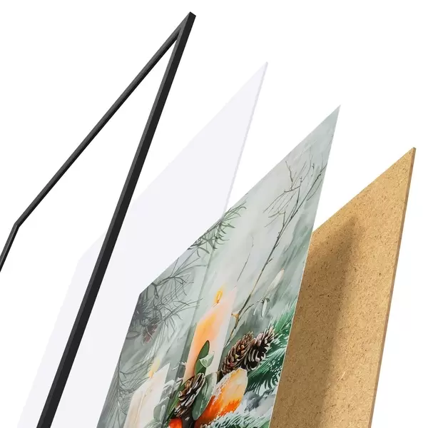 A poszter keretből, plexiből, nyomtatott képből és forgácslap hátlapból áll. A poszter a hátoldalon található rögzítőknek köszönhetően azonnal felakasztható a falra.