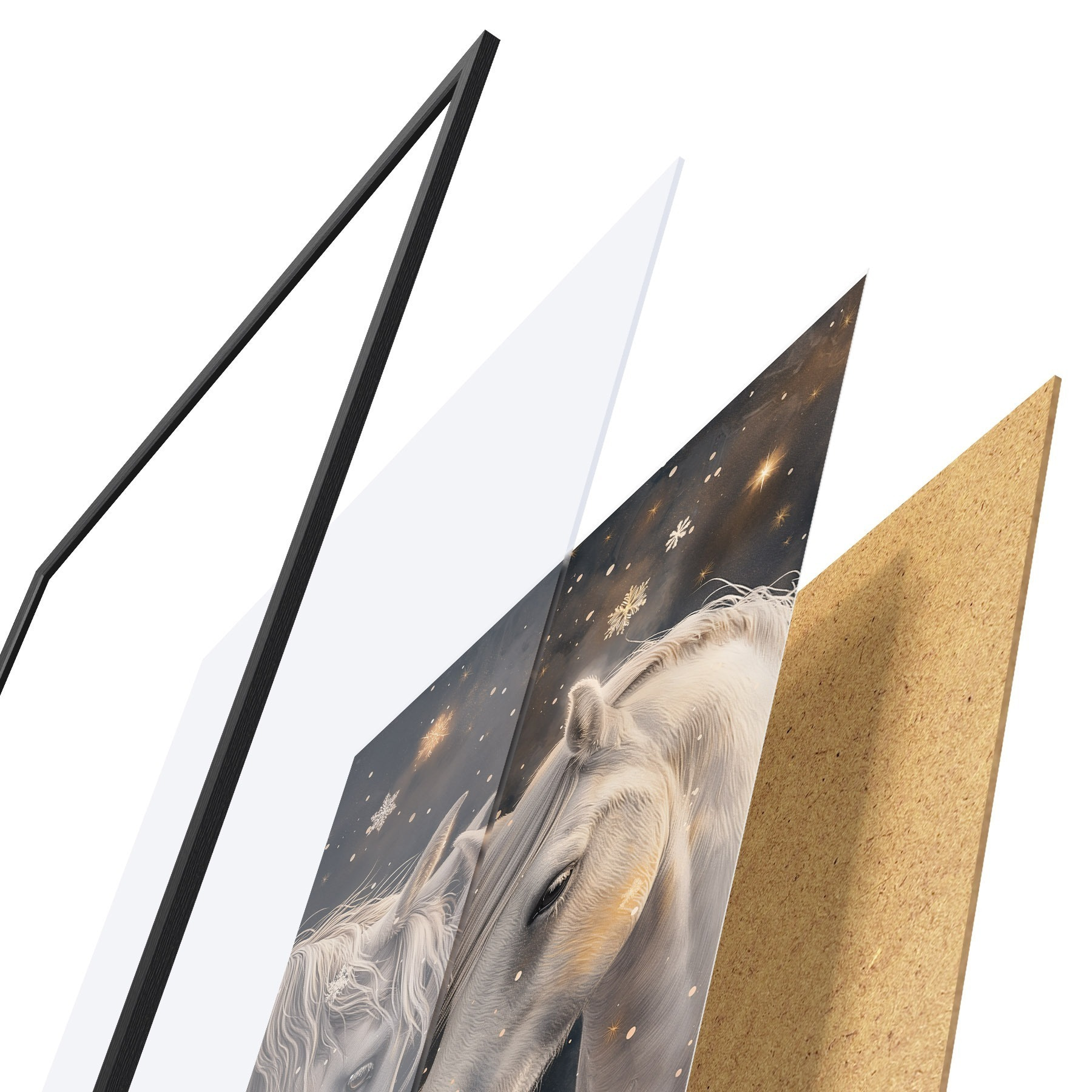 A poszter keretből, plexiből, nyomtatott képből és forgácslap hátlapból áll. A poszter a hátoldalon található rögzítőknek köszönhetően azonnal felakasztható a falra.