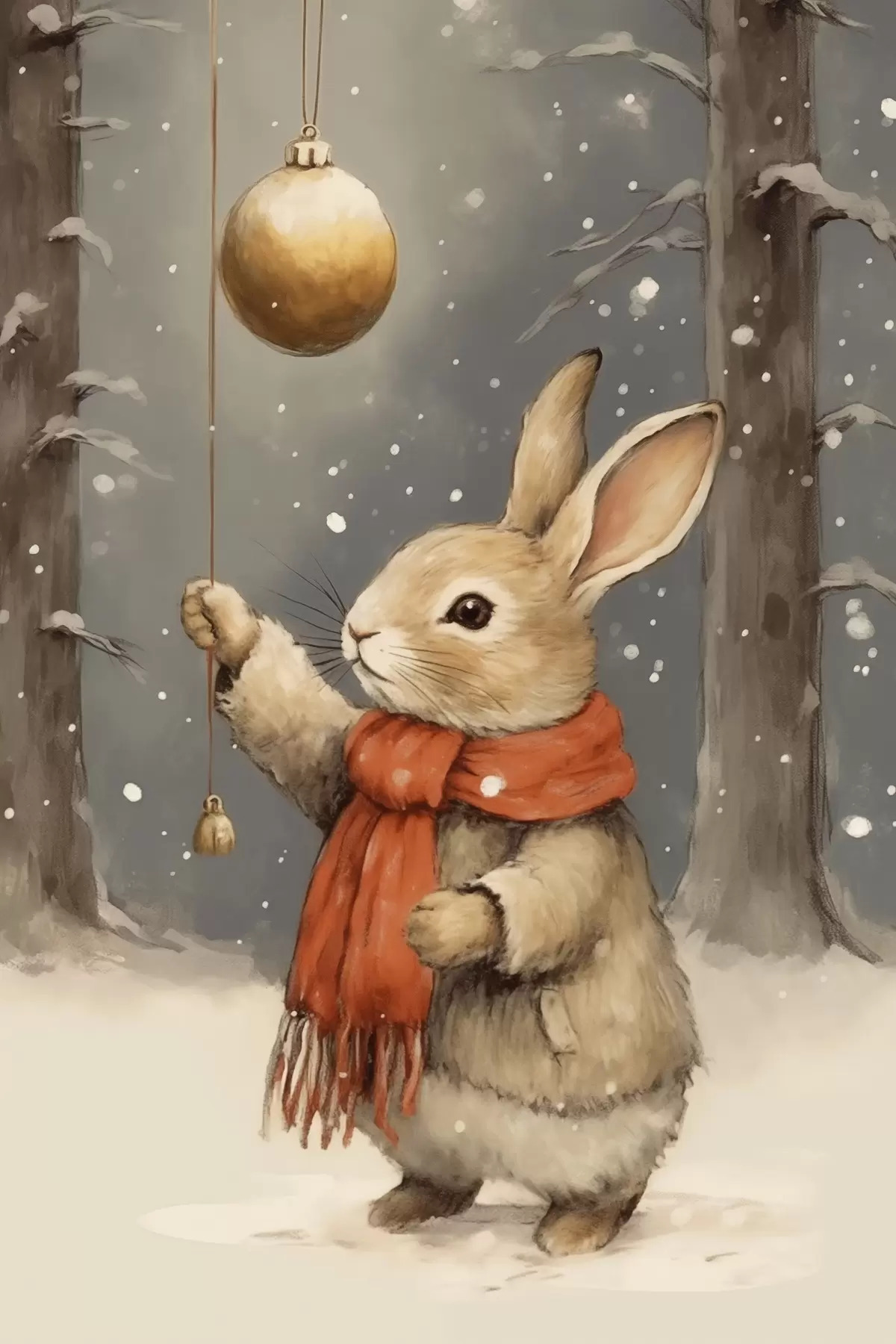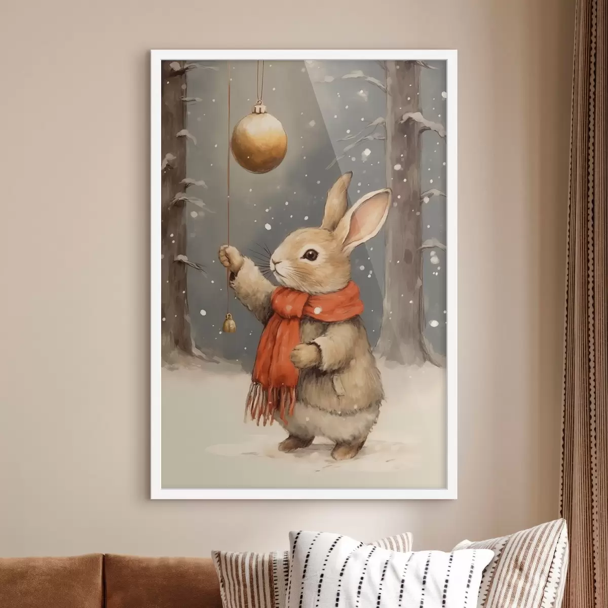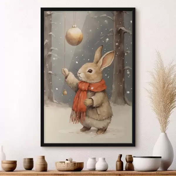 Poster Sálas téli nyúl és karácsonyfadísz Nr f46619
