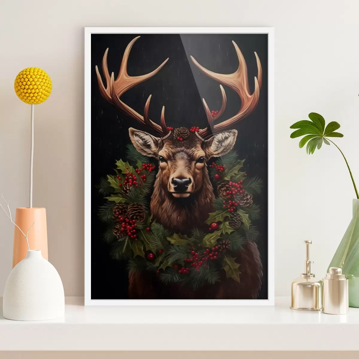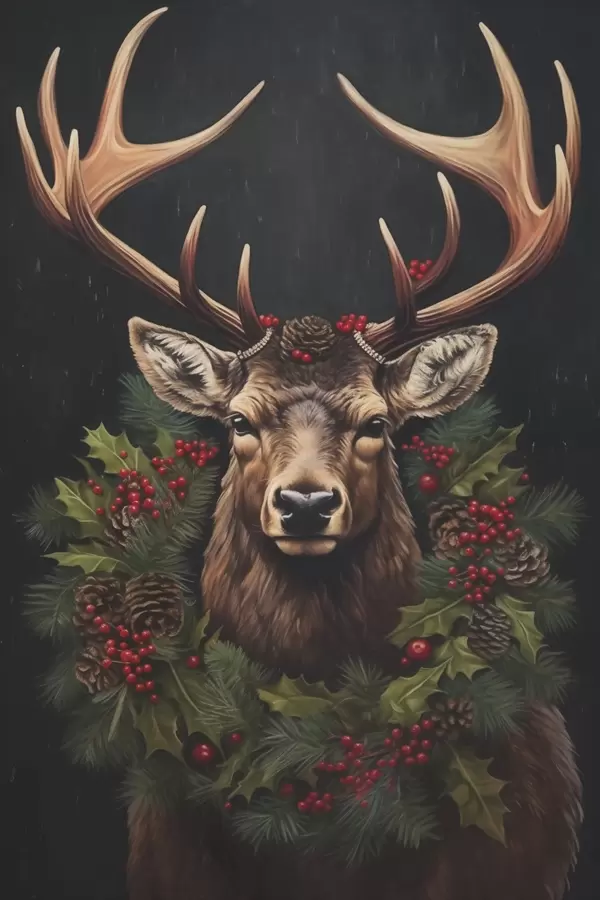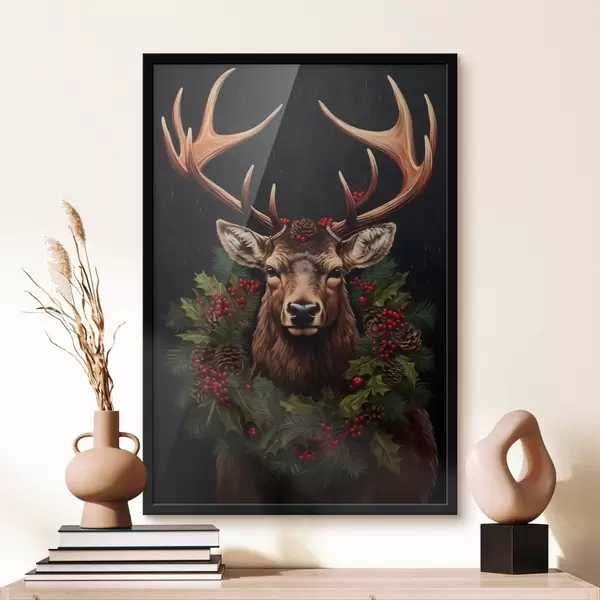 Poster Szarvas portré karácsonyi koszorúval Nr f46628