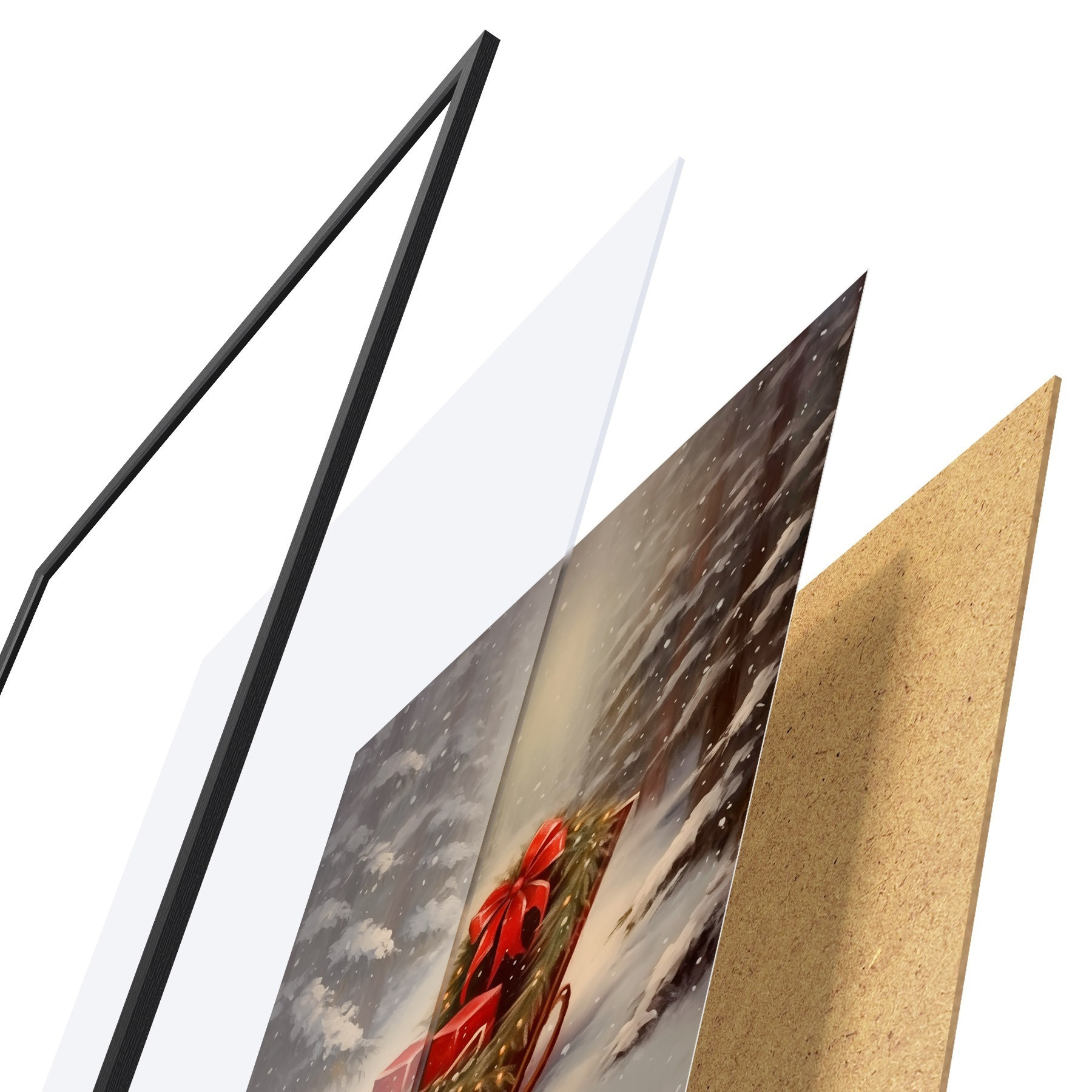A poszter keretből, plexiből, nyomtatott képből és forgácslap hátlapból áll. A poszter a hátoldalon található rögzítőknek köszönhetően azonnal felakasztható a falra.
