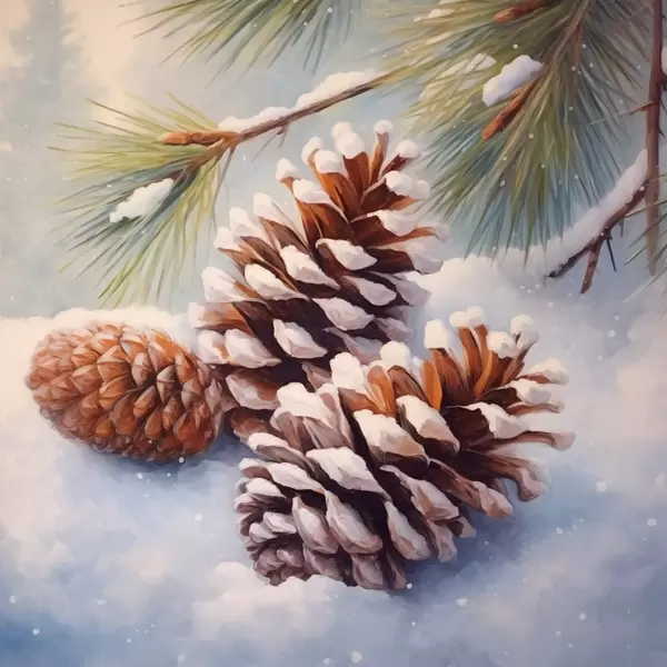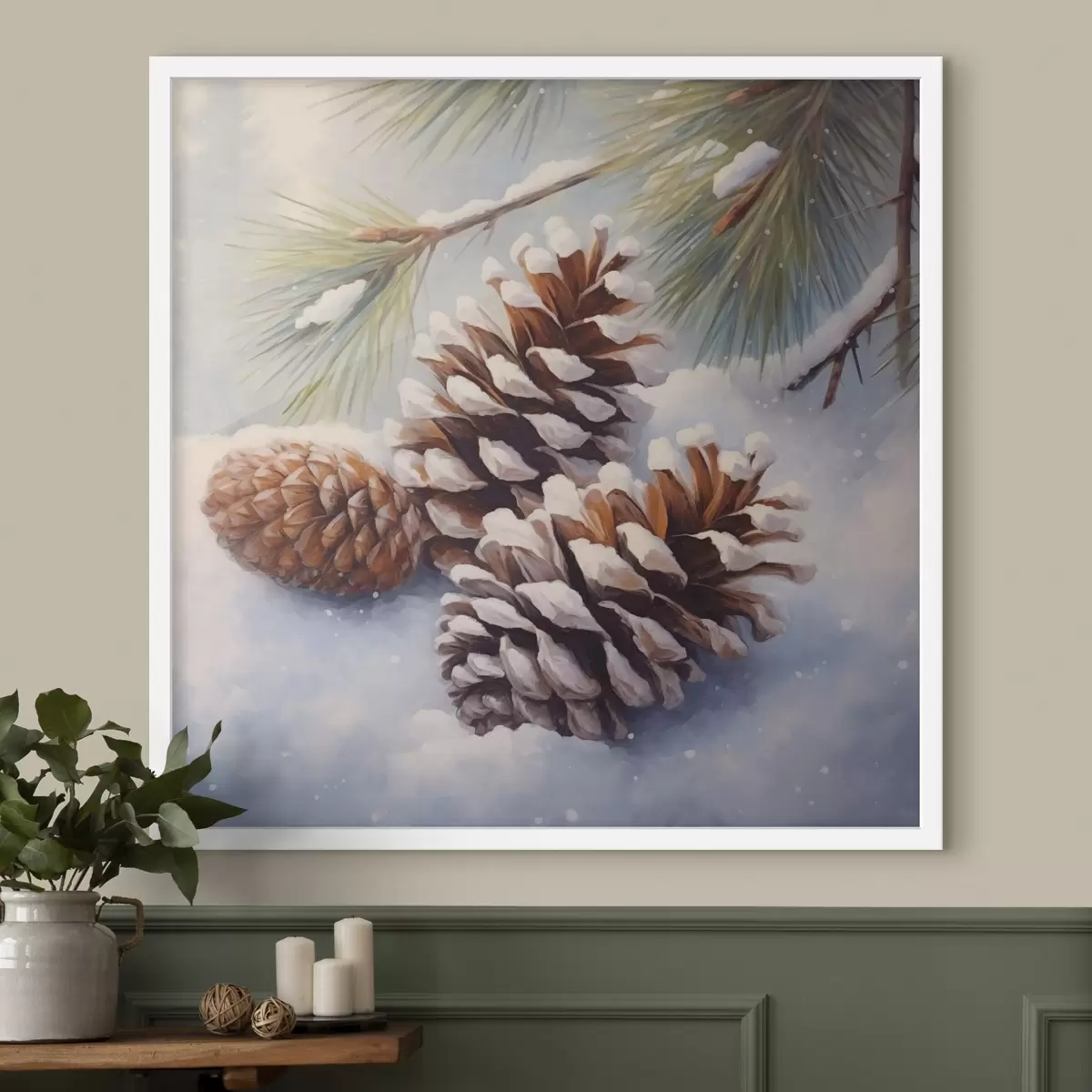 Poster Hóval borított fenyőtobozok és ágak Nr f46631