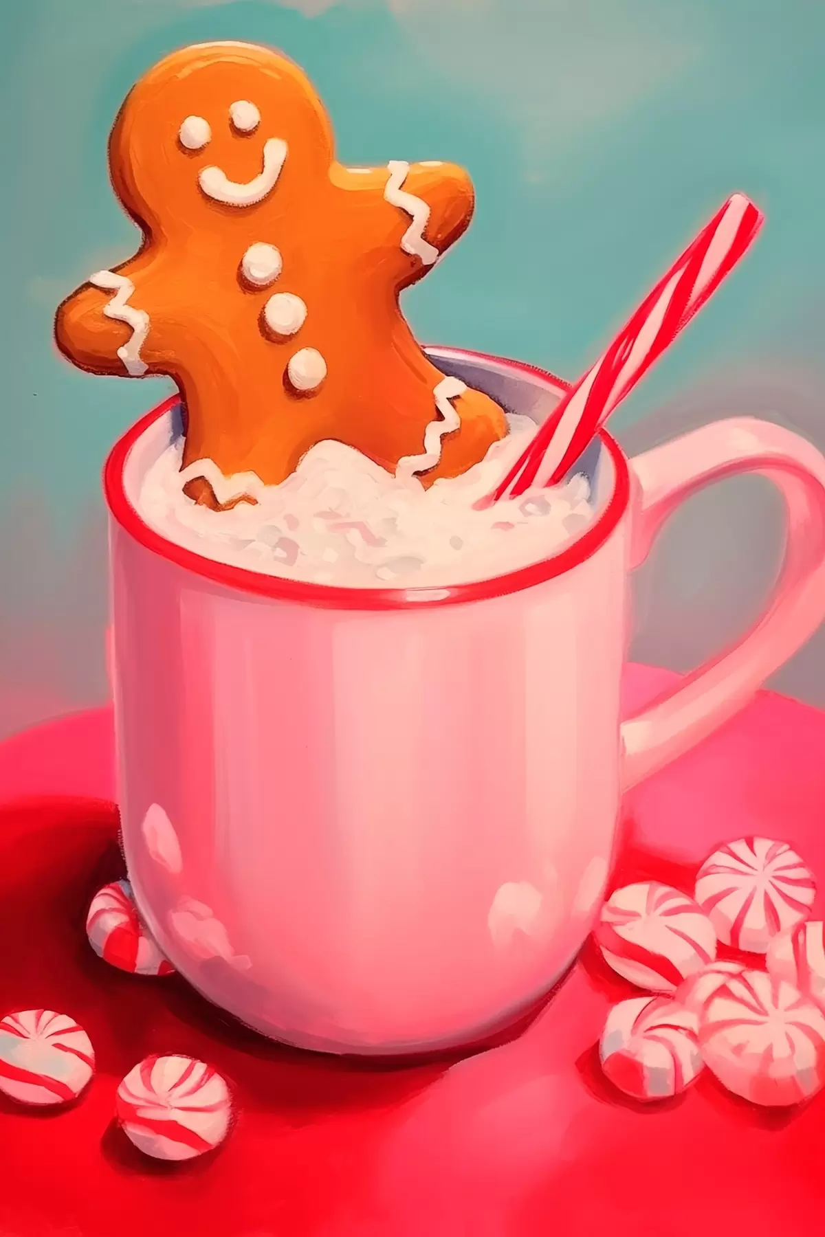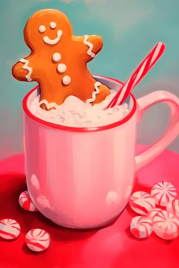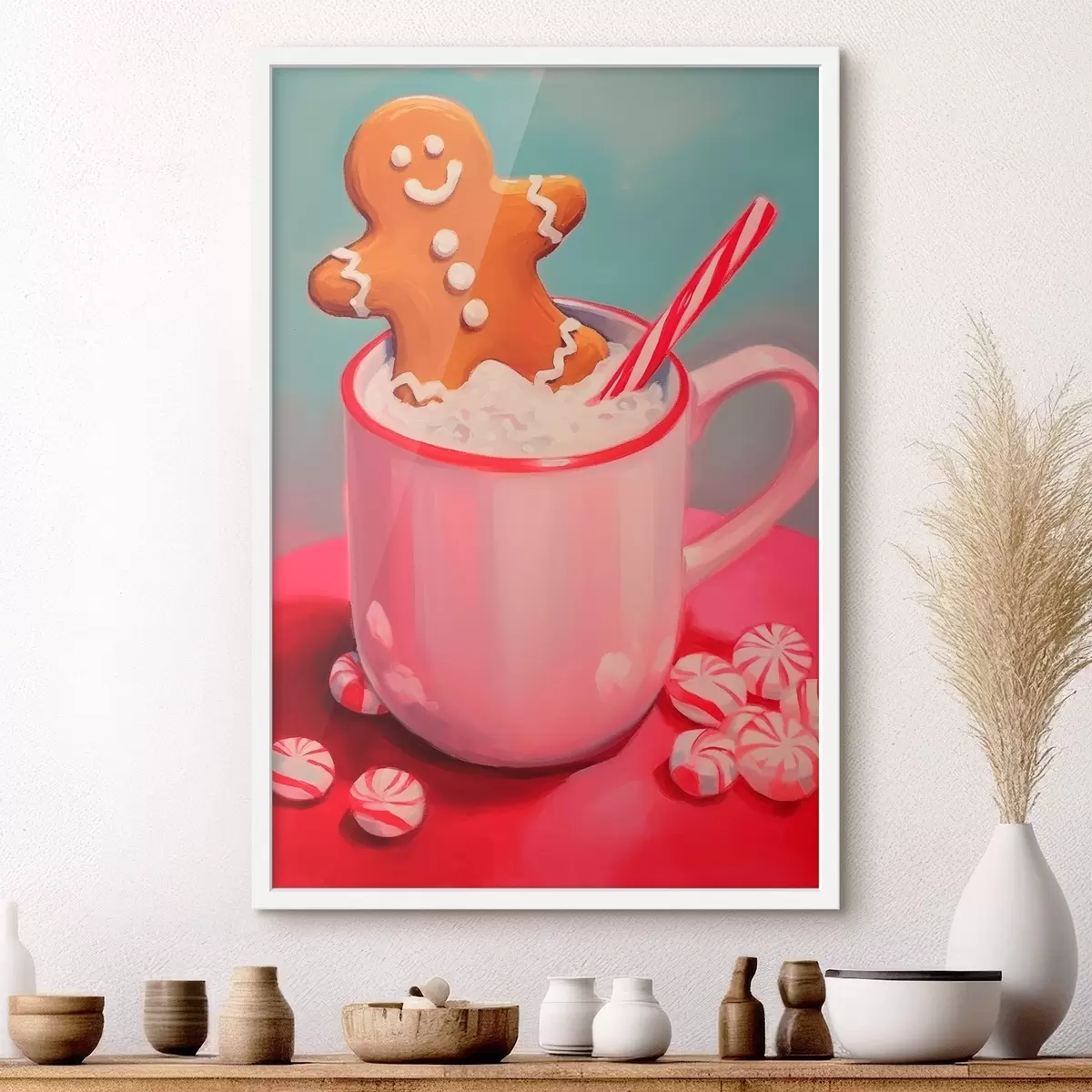 Plakát a sziklán Mézeskalács figura egy csésze forró csokoládéban f46635