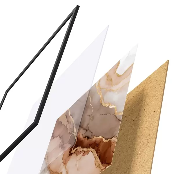 A poszter keretből, plexiből, nyomtatott képből és forgácslap hátlapból áll. A poszter a hátoldalon található rögzítőknek köszönhetően azonnal felakasztható a falra.