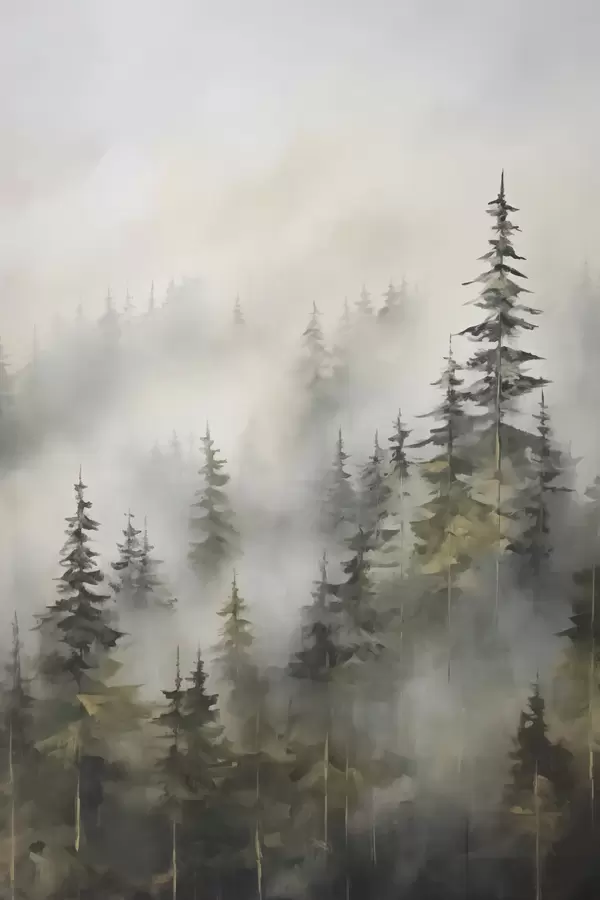 Plakát a sziklán Ködös erdő festmény utánzat f46671