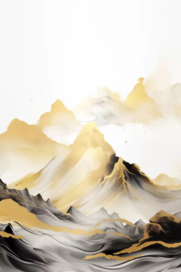 Poster Texturált sárga és fekete hegyek havas csúcsokkal, tusfestés stílusban, minimalista hegylánc Nr f46684