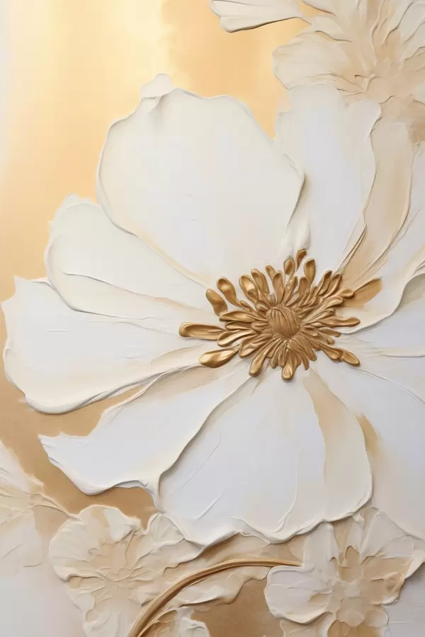 Poster Fehér virág finom szirmokkal, vastag ecsetvonásokkal imitálva, világos narancssárga texturált háttérrel Nr f46691