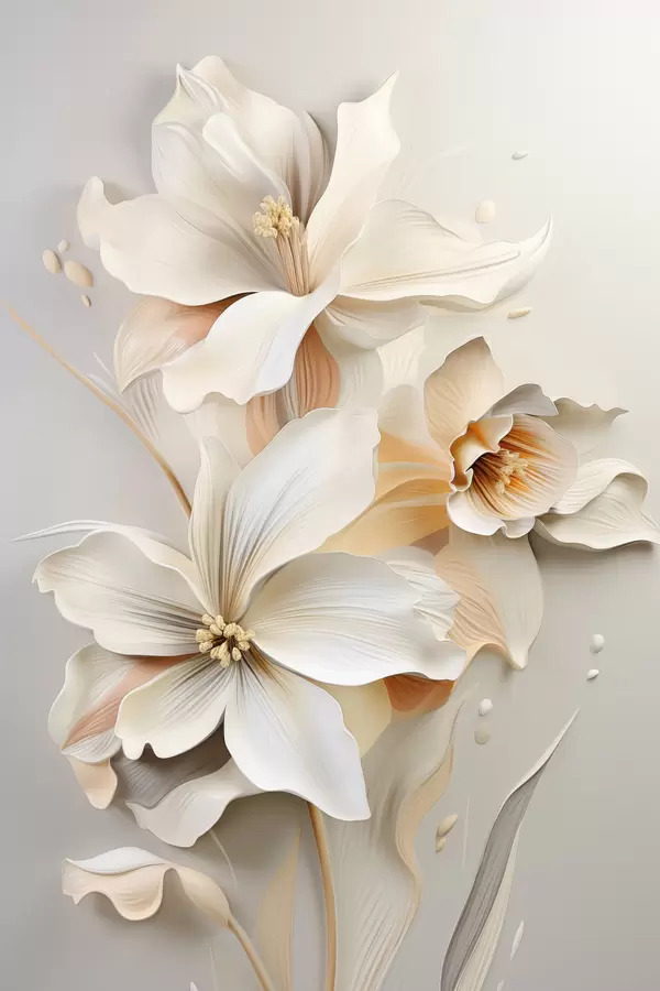Poster Fehér virágok, lágy árnyékú szirmok, világos bézs háttér, elegáns kompozíció, minimalista stílus Nr f46699