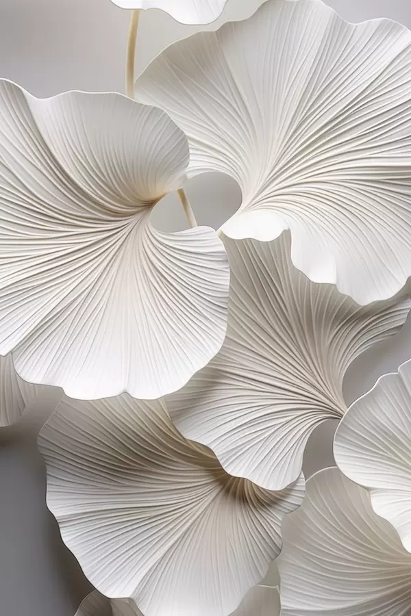 Poster Fehér ginkgo biloba levelek részletes erekkel, lágy megvilágítással, texturált, elegáns és minimalista kialakítással. Nr f46705