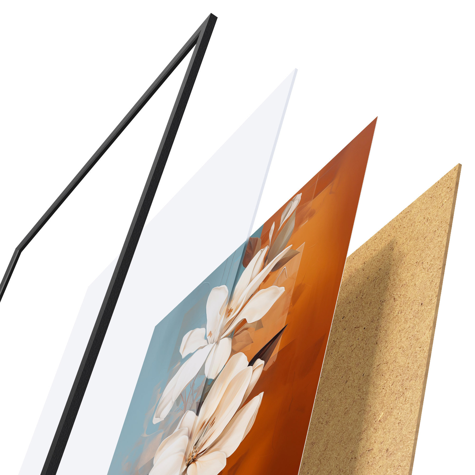 A poszter keretből, plexiből, nyomtatott képből és forgácslap hátlapból áll. A poszter a hátoldalon található rögzítőknek köszönhetően azonnal felakasztható a falra.