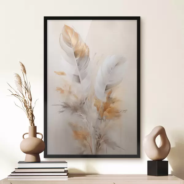 Plakát a sziklán Absztrakt tollak, bézs és barna tollakkal körülvéve, puha és finom, világos bézs háttérrel f46711