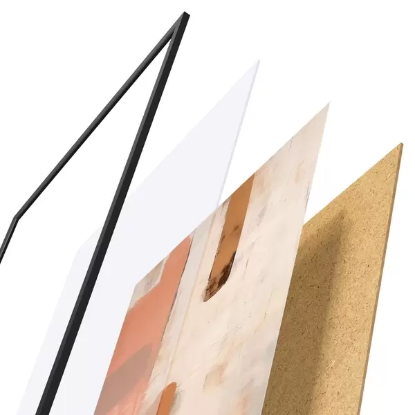 A poszter keretből, plexiből, nyomtatott képből és forgácslap hátlapból áll. A poszter a hátoldalon található rögzítőknek köszönhetően azonnal felakasztható a falra.