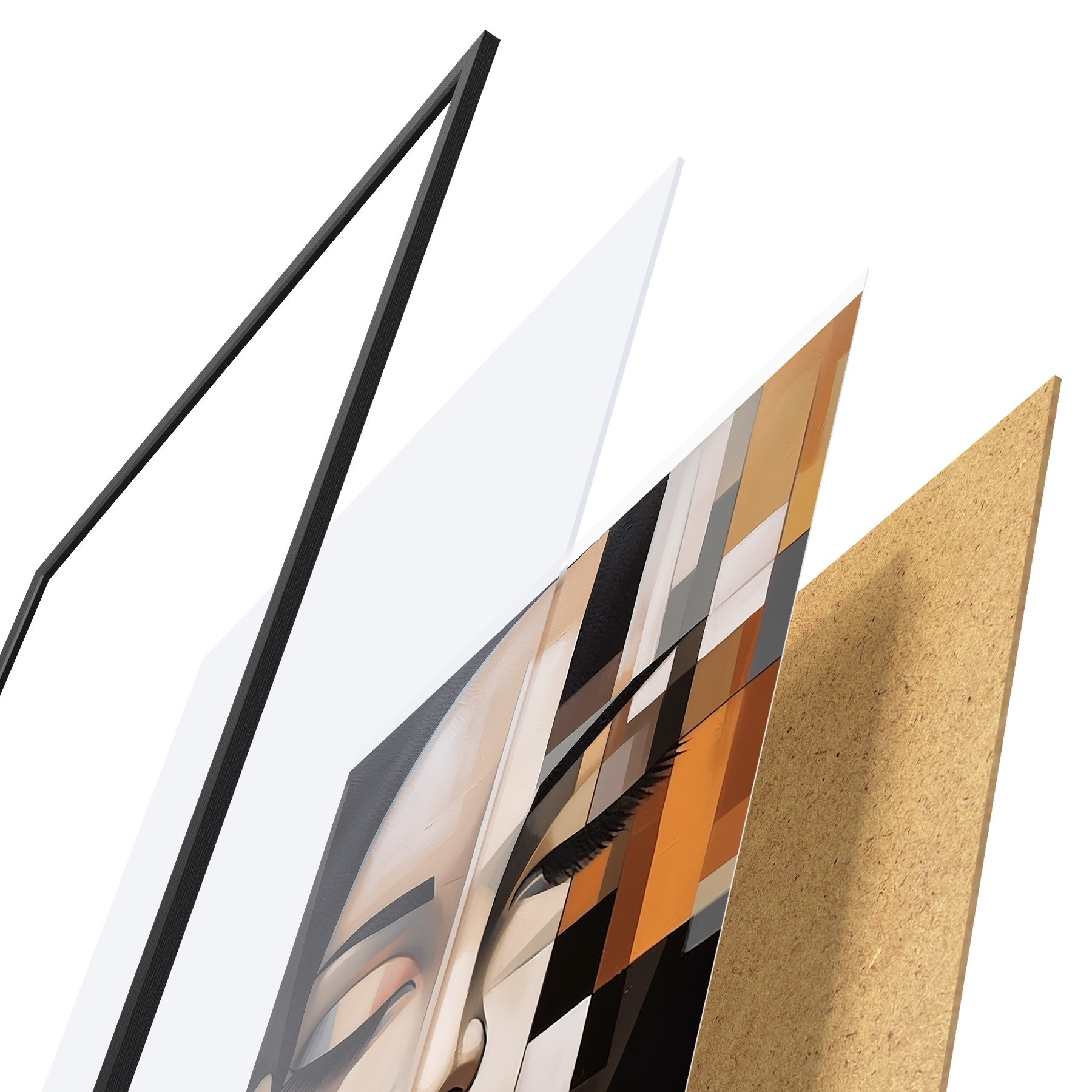 A poszter keretből, plexiből, nyomtatott képből és forgácslap hátlapból áll. A poszter a hátoldalon található rögzítőknek köszönhetően azonnal felakasztható a falra.