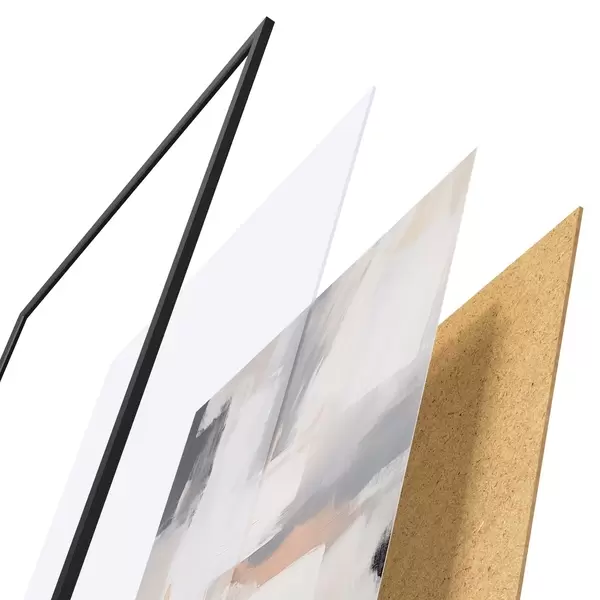 A poszter keretből, plexiből, nyomtatott képből és forgácslap hátlapból áll. A poszter a hátoldalon található rögzítőknek köszönhetően azonnal felakasztható a falra.