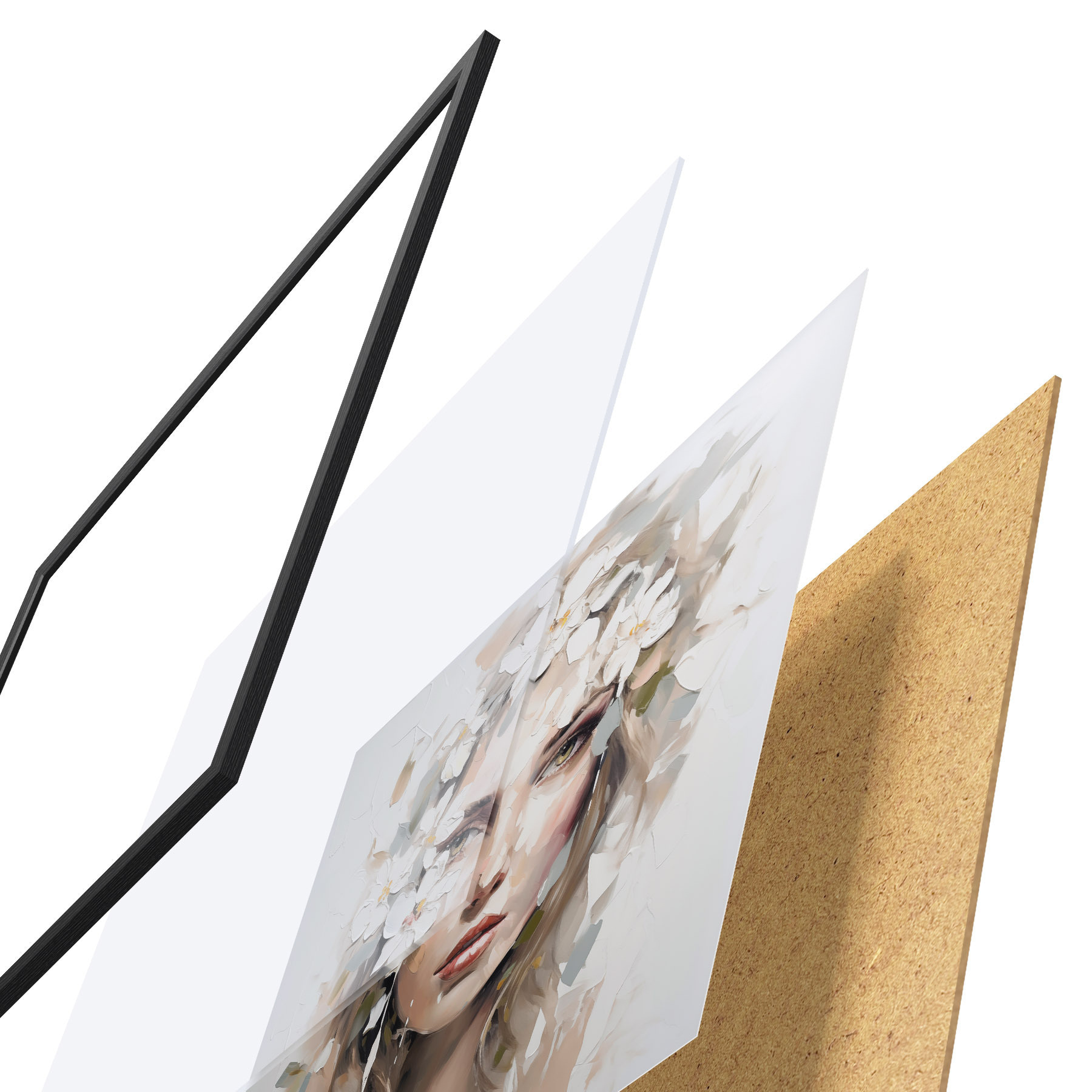 A poszter keretből, plexiből, nyomtatott képből és forgácslap hátlapból áll. A poszter a hátoldalon található rögzítőknek köszönhetően azonnal felakasztható a falra.