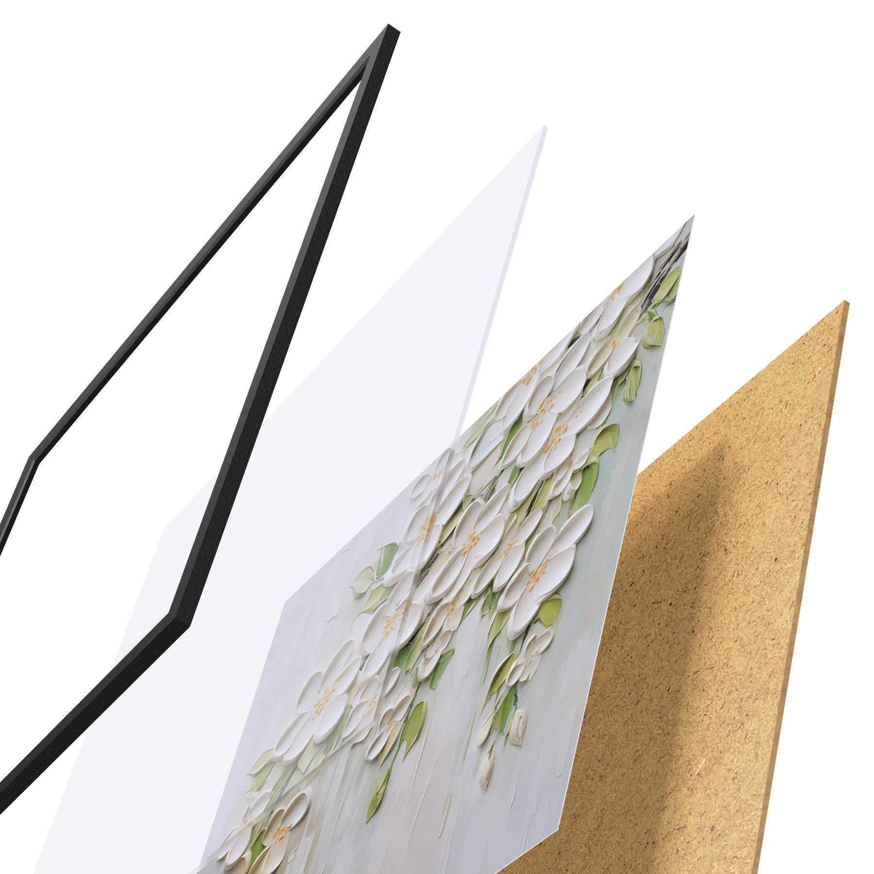 A poszter keretből, plexiből, nyomtatott képből és forgácslap hátlapból áll. A poszter a hátoldalon található rögzítőknek köszönhetően azonnal felakasztható a falra.