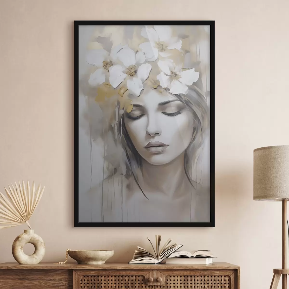 Poster Absztrakt portré egy virágokkal díszített lányról, festmény utánzat Nr f46756