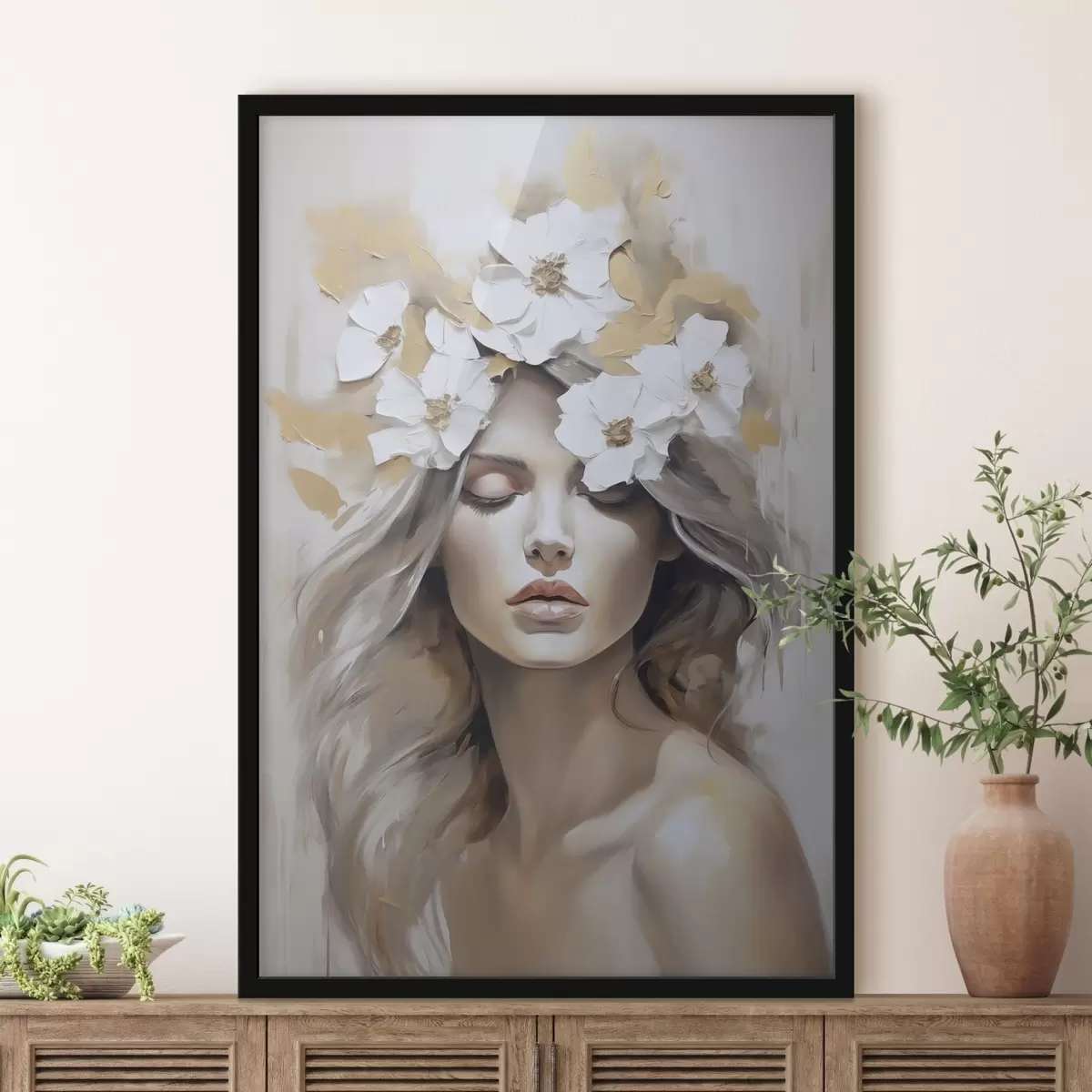 Poster Absztrakt portré egy lány virágokkal Nr f46757