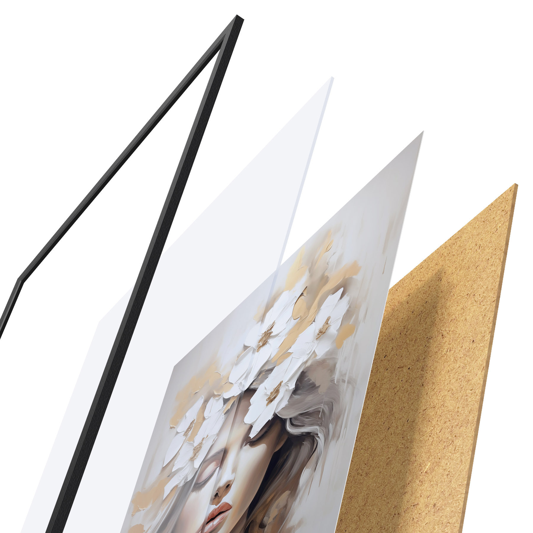 A poszter keretből, plexiből, nyomtatott képből és forgácslap hátlapból áll. A poszter a hátoldalon található rögzítőknek köszönhetően azonnal felakasztható a falra.