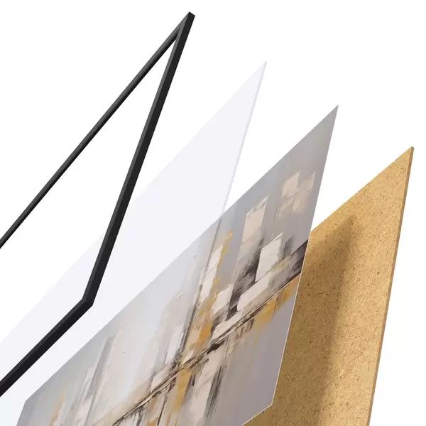 A poszter keretből, plexiből, nyomtatott képből és forgácslap hátlapból áll. A poszter a hátoldalon található rögzítőknek köszönhetően azonnal felakasztható a falra.